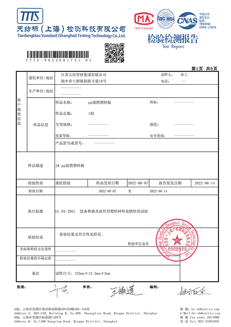 江苏吉庆管材集团有限公司创办于2010年2月,是pp管,pp管材,pp管件,pp风管,frpp管,frpp管材,pph管,pph管材,pph管件,pph风管,pvdf管,pvdf管材,pp储罐,pp板材,喷淋塔,脱硫塔等环保设备的专业化生产企业。公司占地50余亩,拥有各类资产8000余万元,专业技术人员20余人,管材生产线10条,管件生产线11条,具备了10000余吨各类防腐塑料制品的年生产能力。公司通过了ISO9001-2000质量体系认证,同时被评为AAA信用单位,2018年公司被评为高新技术企业,此后陆续取得安全生产管理证书等荣誉。公司位于水上花园城市----江苏镇江扬中市八桥镇永福路18号,交通便捷,可直接导航至公司园区内。公司全体员工将以高度的敬业精神,严格的质量控制理念和科学的管理方法,及时周到的服务,竭力为防腐塑料管道在各领域的推广和应用作出更大的贡献!